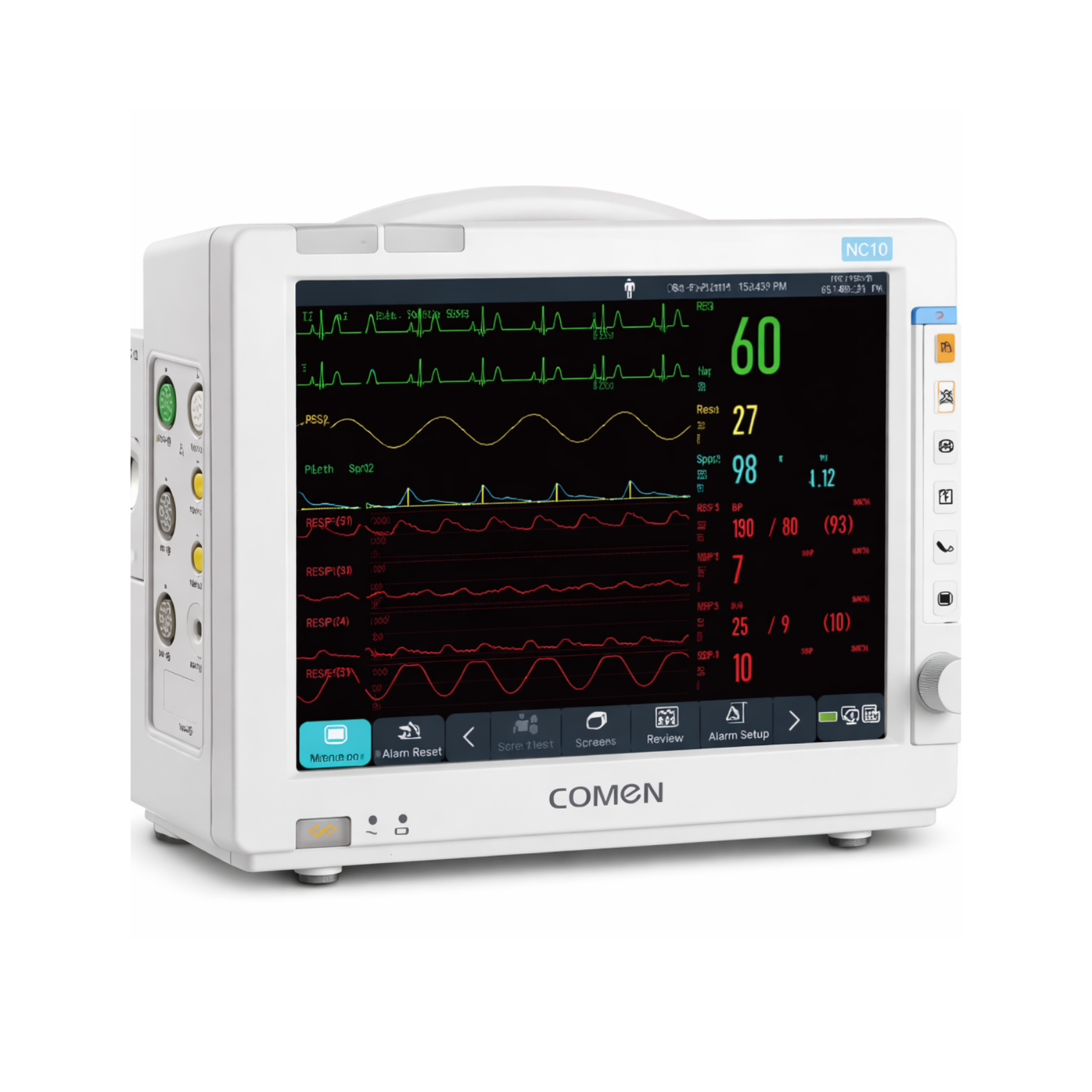 El monitor de signos vitales COMEN NC10 está diseñado para proporcionar un monitoreo continuo, preciso y confiable del paciente en diversos entornos clínicos. Integra los parámetros esenciales para la vigilancia constante de los signos vitales.